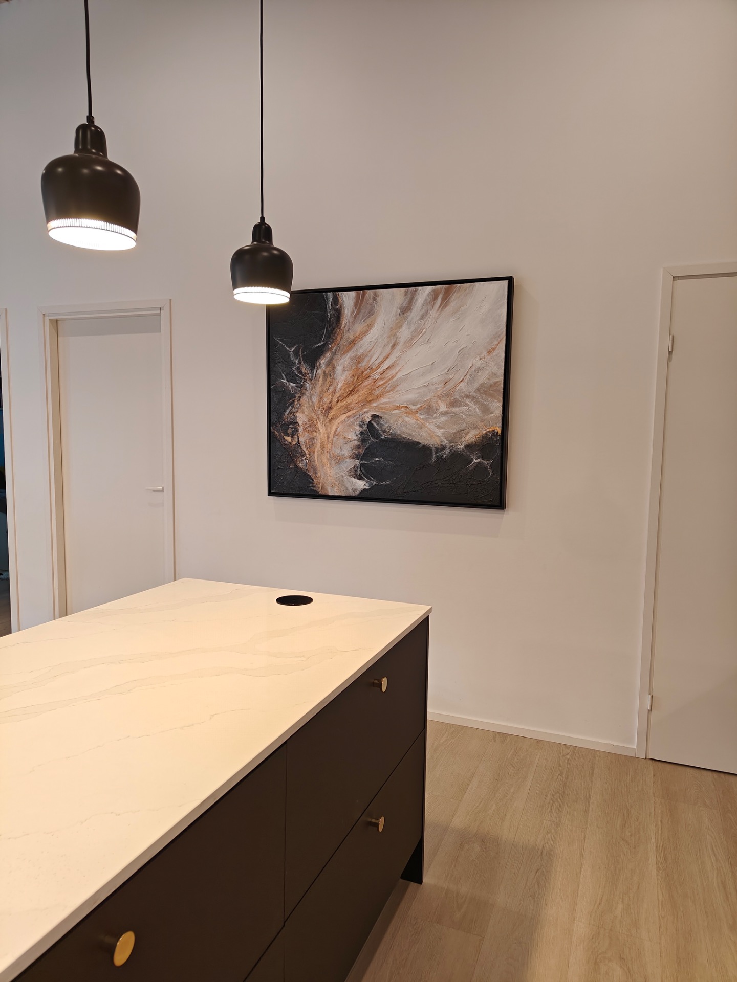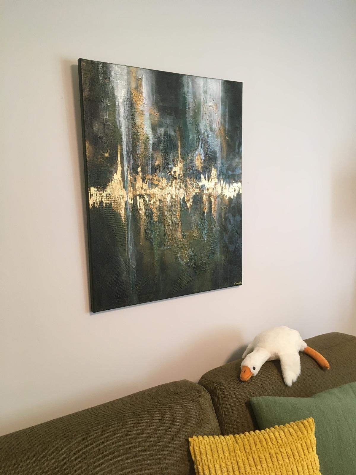 ”Taulu oli loistavasti pakattu ja tuli ehjänä perille. Taulu ripustettuna nyt paikalleen, ja se näyttää siltä kuin olisit juuri meidän asuntoamme varten maalannut. Se on upea!”