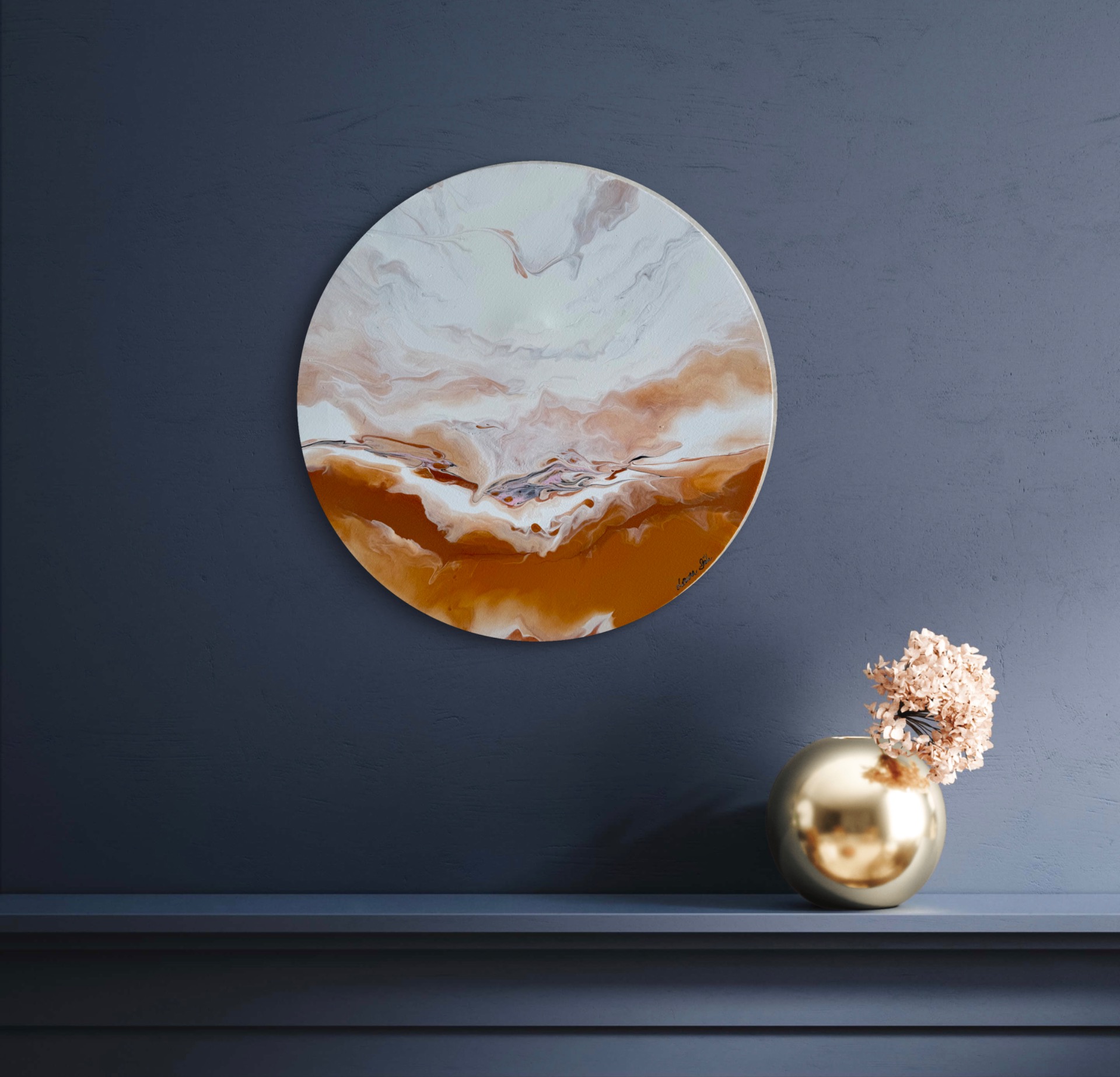 Pyöreä teos, jonka halkaisija on 40 cm.