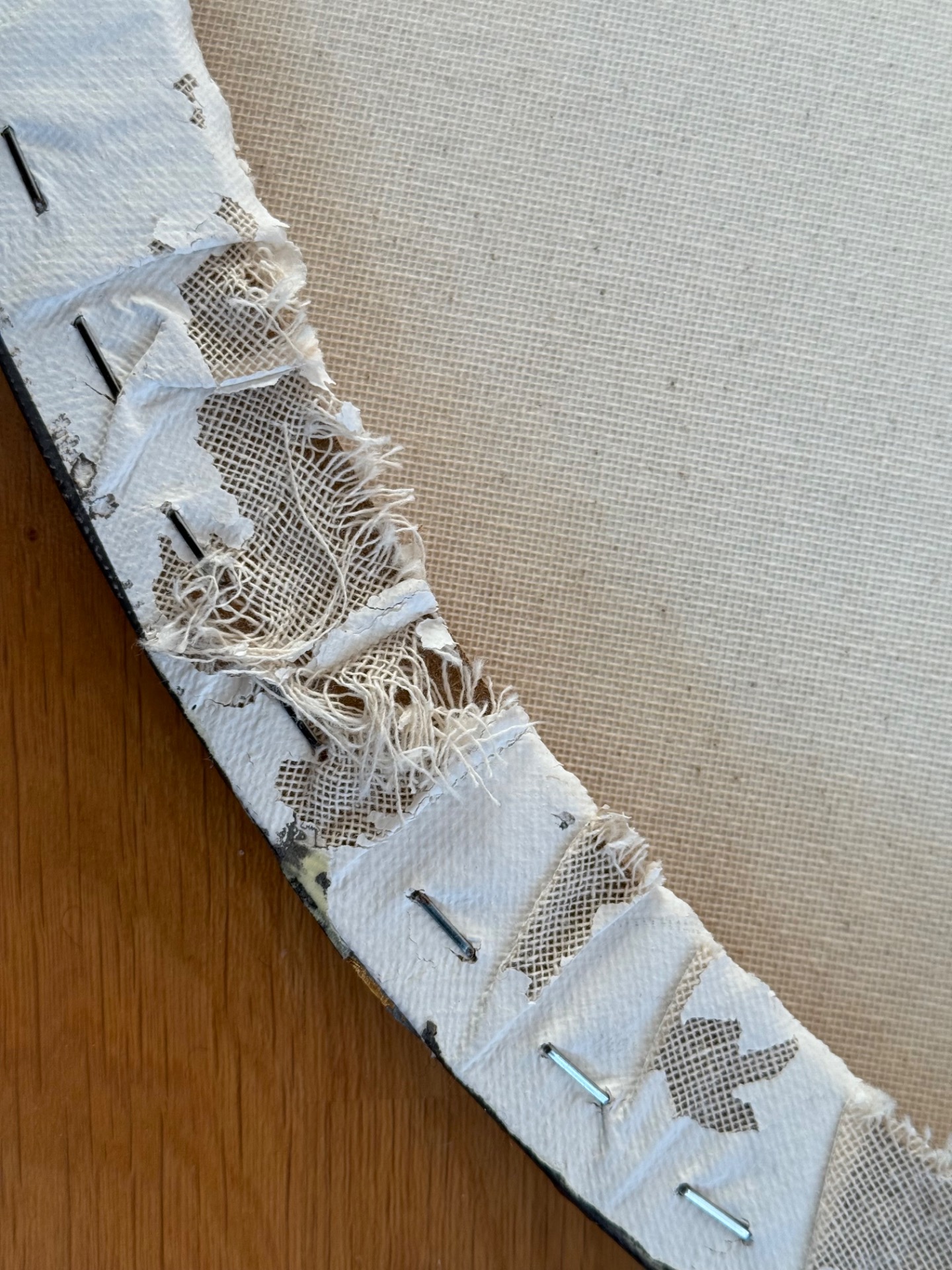 Teoksen takaosassa kankaassa paikoitellen repeämiä maalausprosessissa käytetyistä suojateipeistä johtuen (kts kuva). Tämä huomioitu hinnassa. Etupuolelta virheetön. Ripustusvalmis.