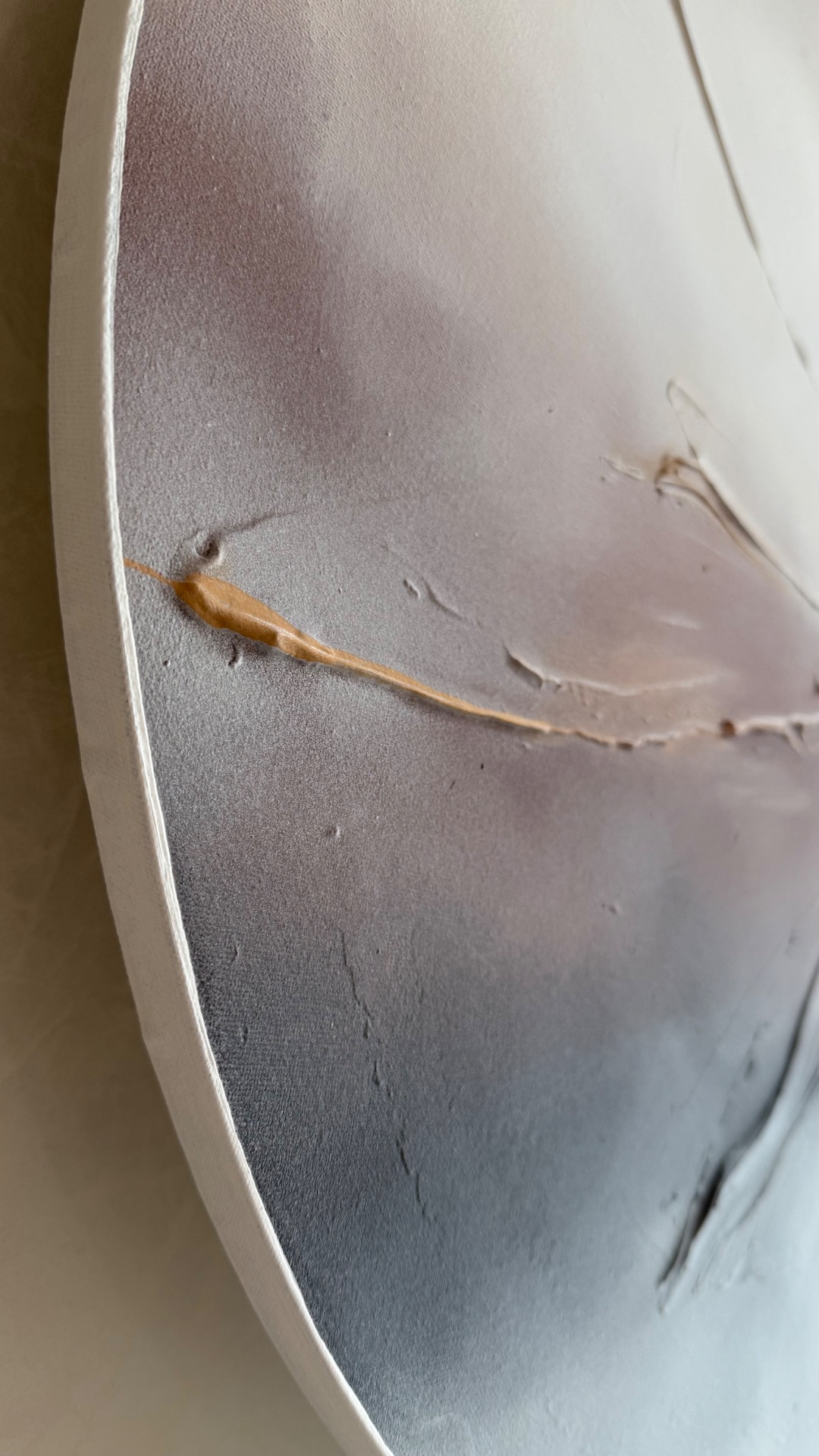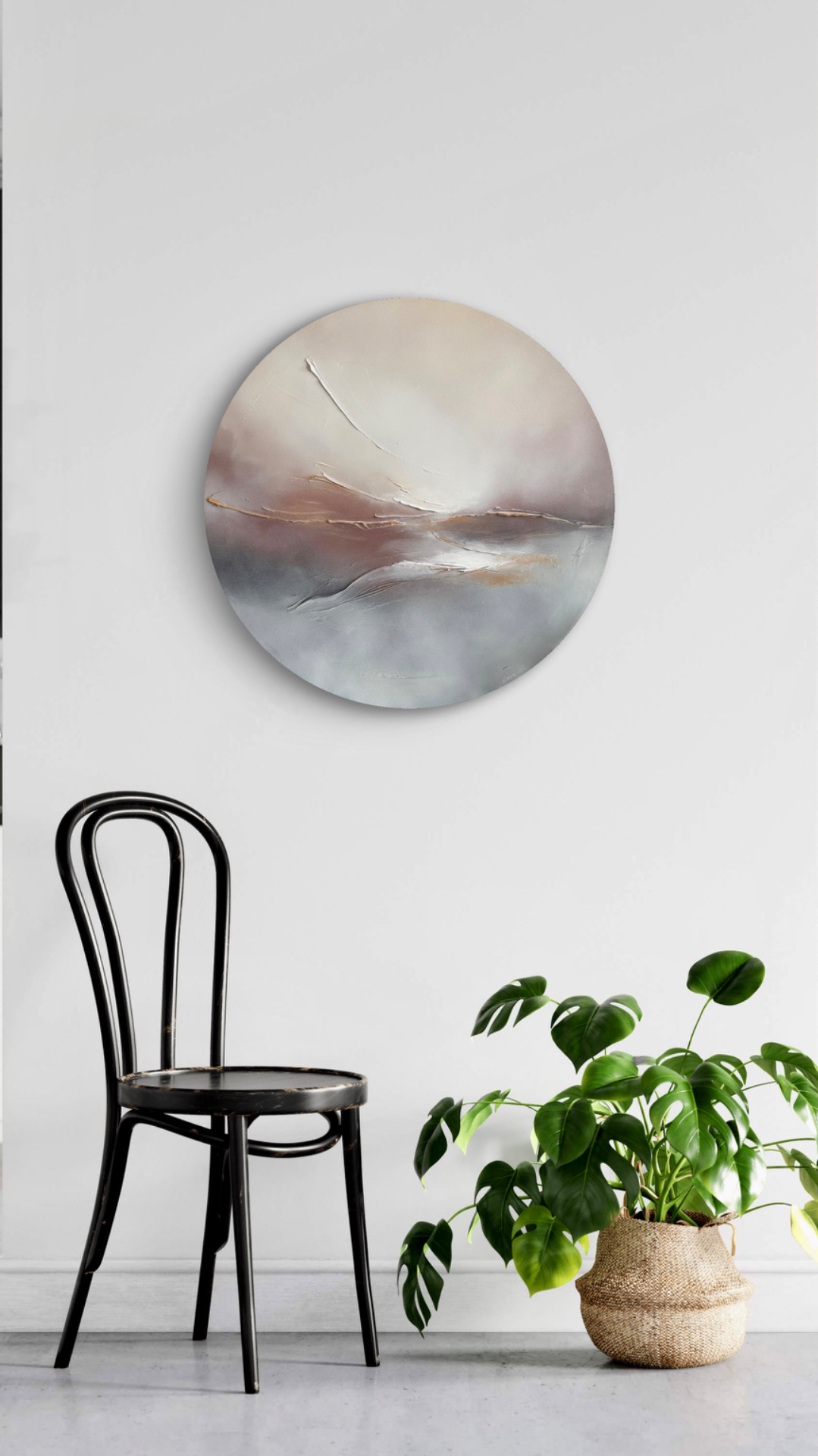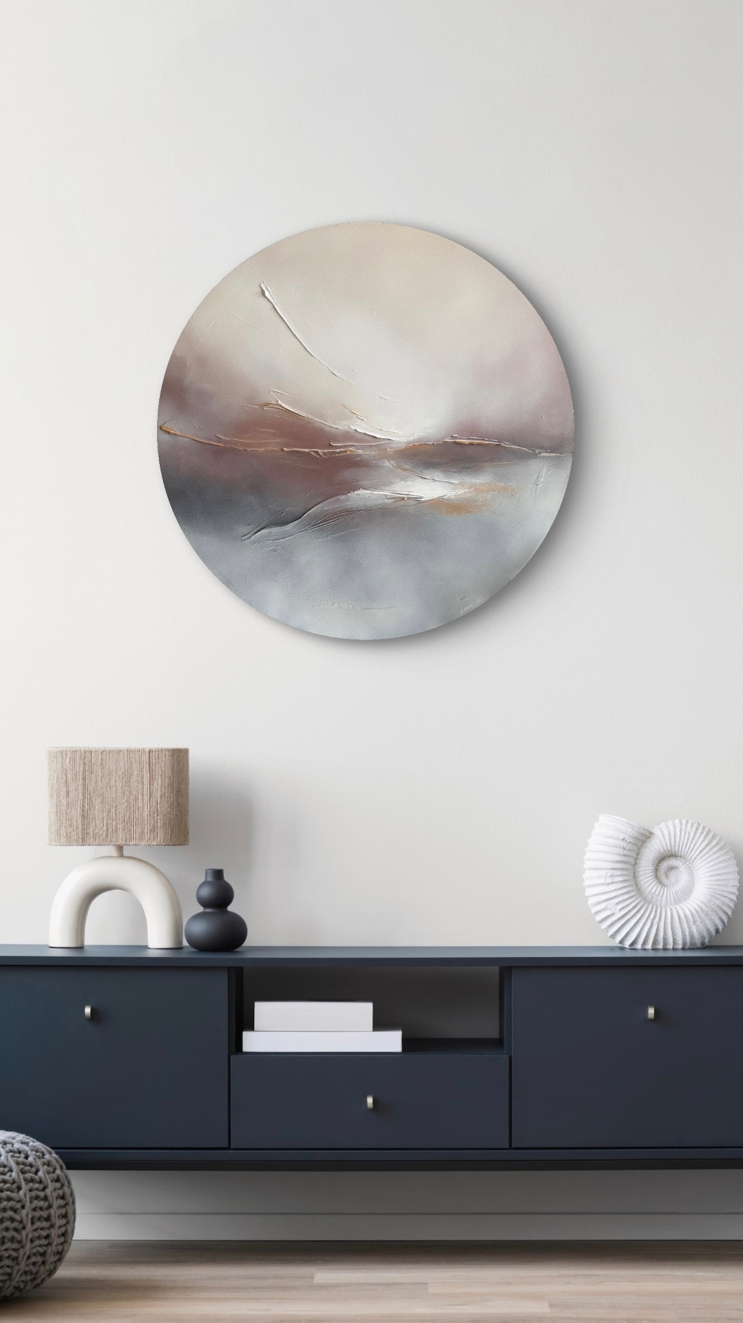 Pyöreä maalaus (halk. 76 cm) ”Kesäyön valo” sarjasta.