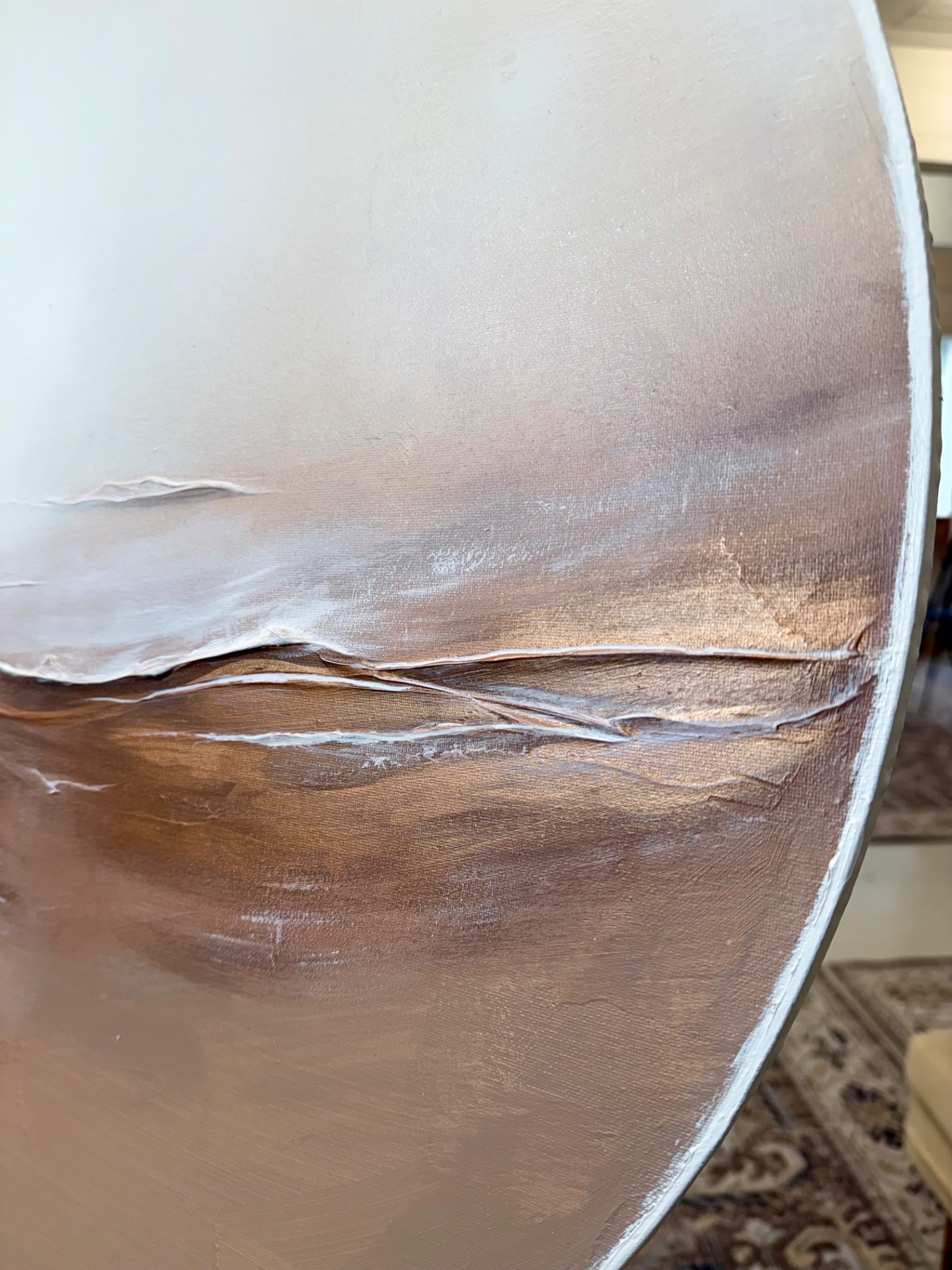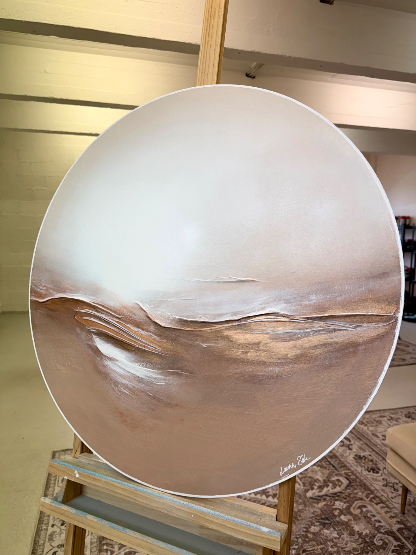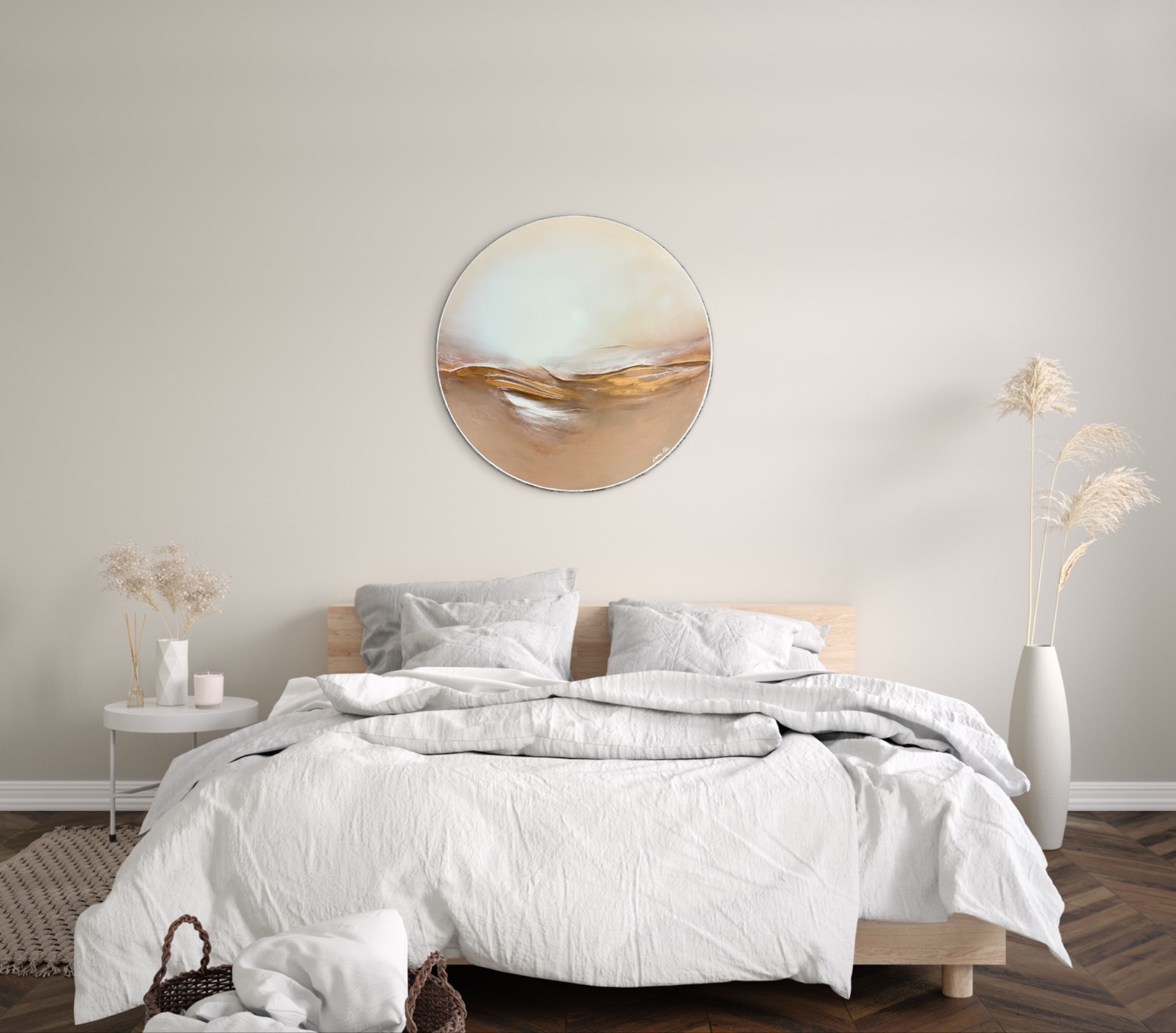 Moderni pyöreä taivaanrantamaalaus, jonka halkaisija on 76 cm.